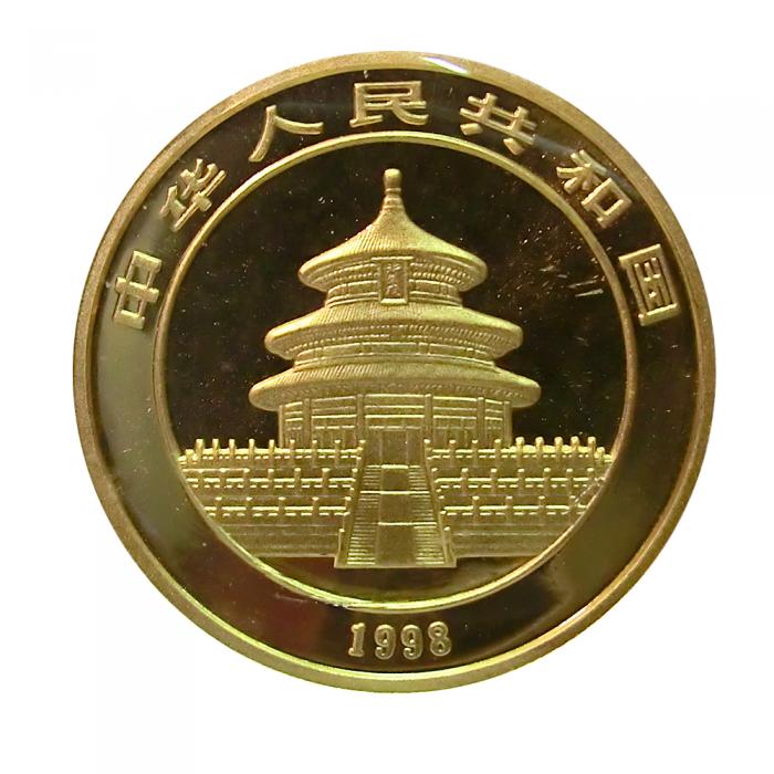 Sie erhalten eine Goldmünze China Panda, Jahrgang 1998.
