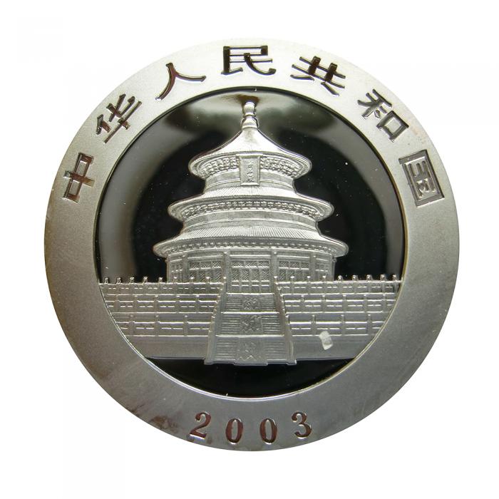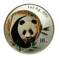 Sie erhalten eine China Panda Silbermünze, Jahrgang 2003, coloriert.
