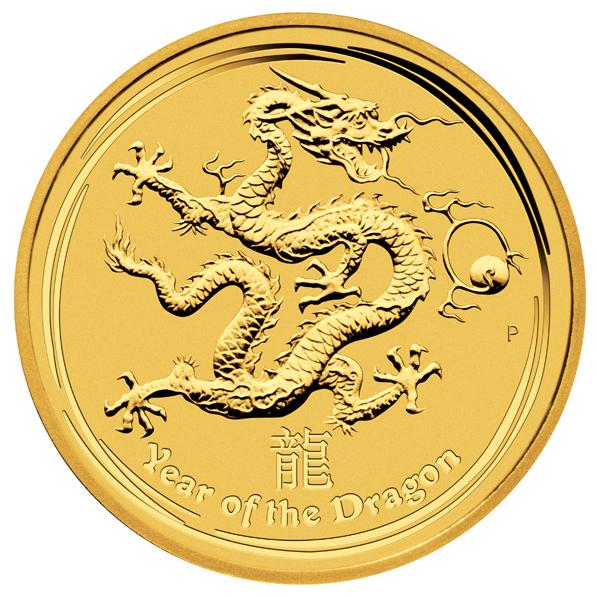 Sie erhalten eine australische Goldmünze Lunar II Drache - Year of the Dragon - Jahrgang 2012