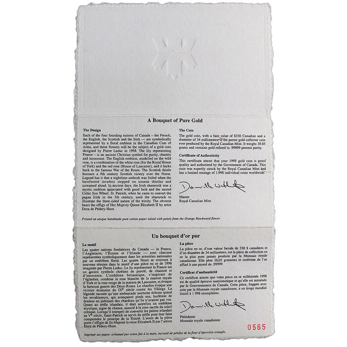 Sie erhalten eine Goldmünze The four flowers, Jahrgang 1998.