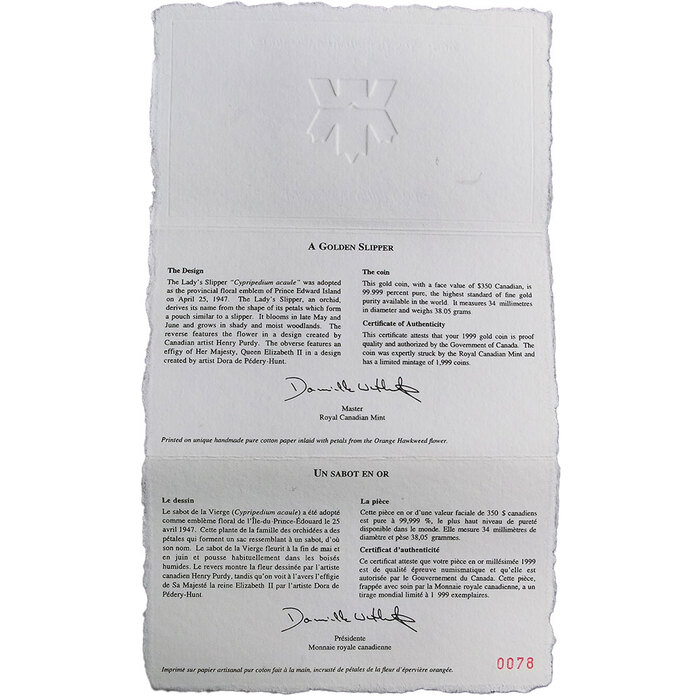Sie erhalten eine Goldmünze aus Kanada 350 Dollar - -Motiv Lady´s Slipper 1999 PP