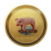 Lunar I Goldmünze Schwein 2007 - 1/2 Unze coloriert