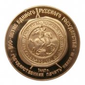 1000 Jahre Russland Goldmünze PP Siegel Iwan III 1989- 100 Rubel