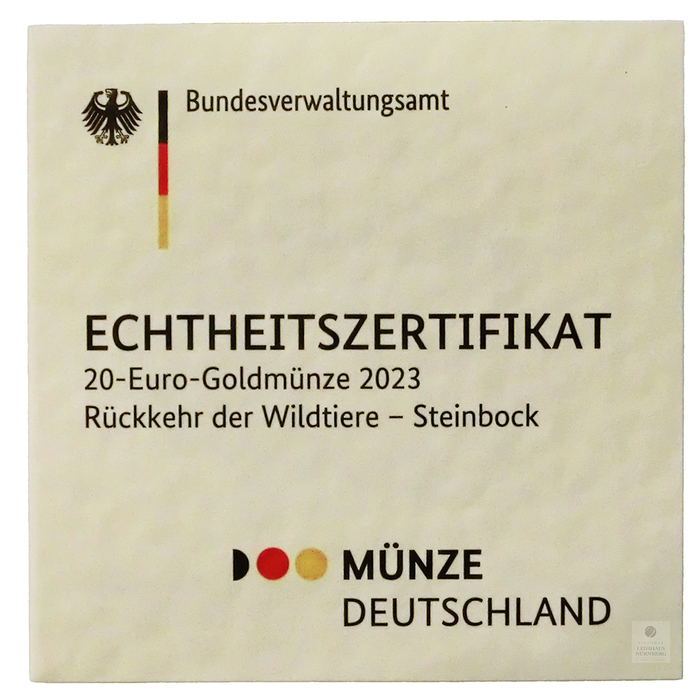 Sie erhalten eine Goldmünze Rückkehr der Wildtiere Steinbock 2023, Prägestätte "A"