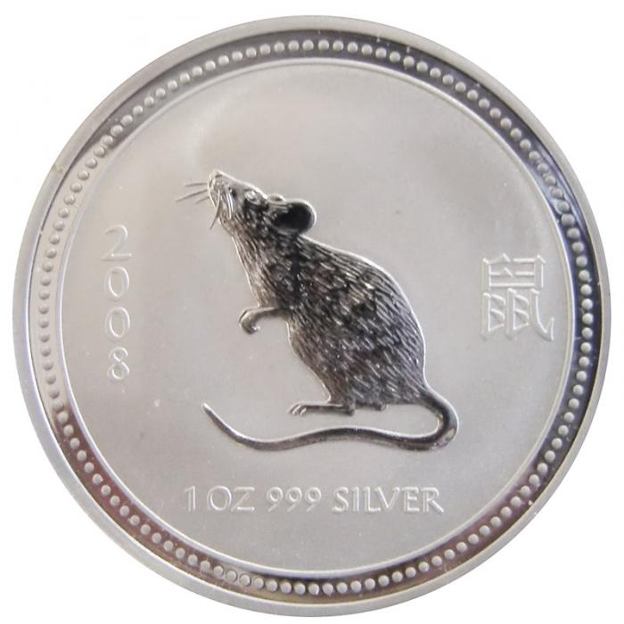 Sie erhalten eine australische Silbermünze Lunar I Maus - year of the mouse - Jahrgang 2008