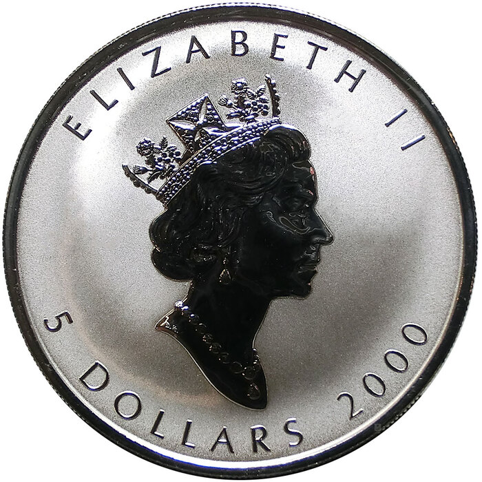 Sie erhalten eine Silbermünze Maple Leaf 2000 Privymark Expo 2000 - 1 Unze 999,9 Feinsilber