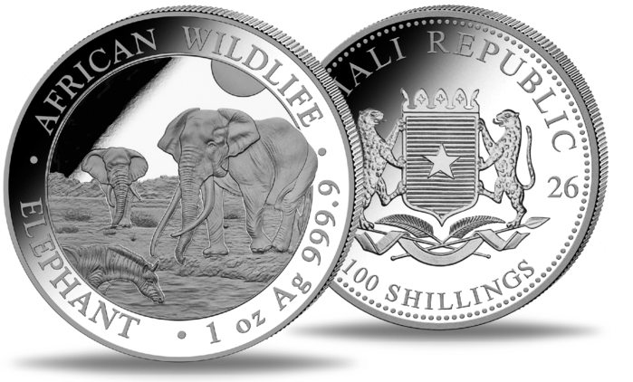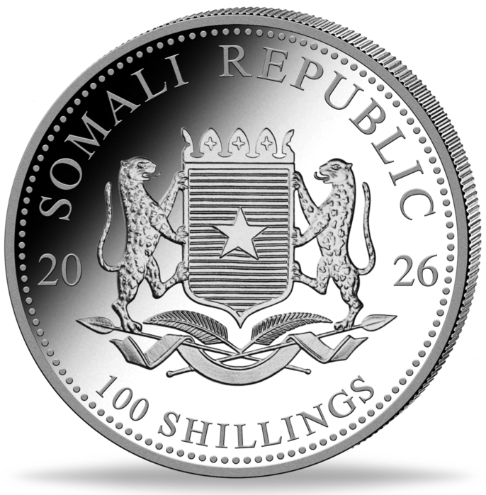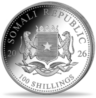 Sie erhalten hier eine Silbermünze Somalia Elefant, Jahrgang 2026.