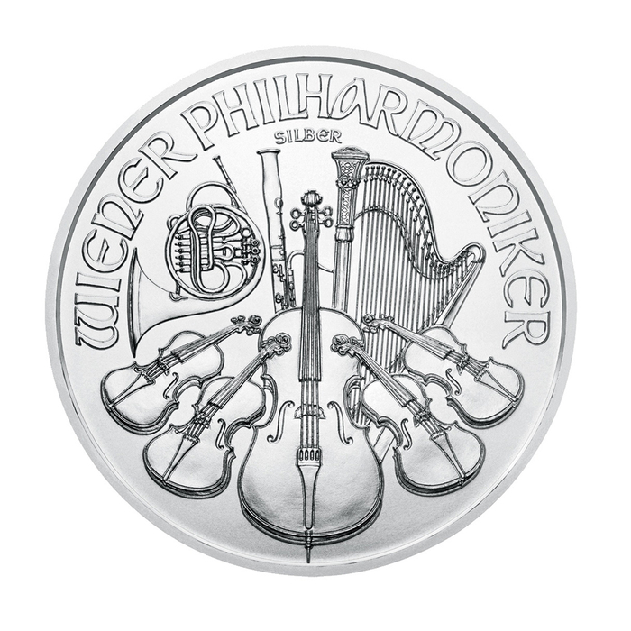 Sie erhalten eine Silbermünze Wiener Philharmoniker, Jahrgang 2026.